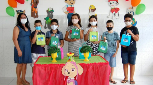 A ação teve o objetivo de homenagear as crianças com matrículas ativa na rede de ensino municipal. O momento foi organizado observando a adoção das medidas sanitárias preventivas a transmissão da Covid-19 e todos os participantes foram orientados sobre o uso obrigatório de mascara facial e higienização das mãos com álcool em gel.
