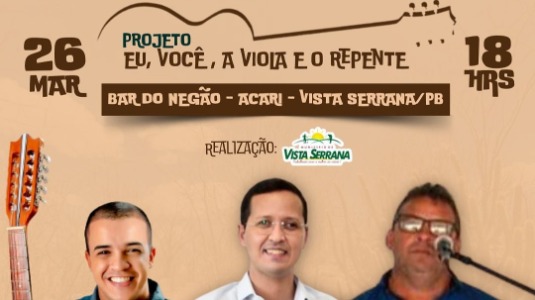 Estimular o desenvolvimento cultural e valorizar os artistas da terra. Esse é o objetivo da Prefeitura de Vista Serrana, a partir da execução do projeto “Eu, você, a viola e o repente com apresentações artísticas de forma gratuita à população.